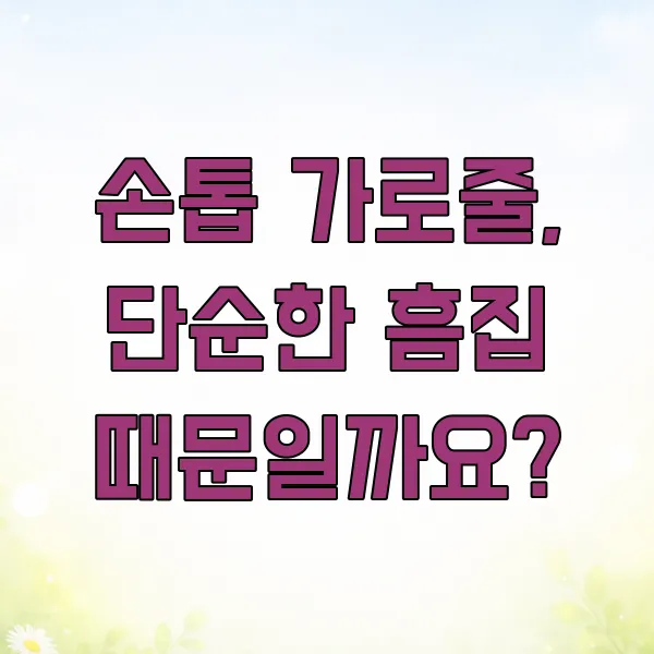 하지만 별다른 외상 없이도 가로줄이 계속 나타난다면, 단순히 '운이 나빴어!'라고 넘기기보다는 다른 가능성에 대해 한 번쯤 생각해 보는 것이 좋겠어요. 우리 몸이 보내는 건강 신호에 조금 더 귀 기울여볼 필요가 있으니까요!